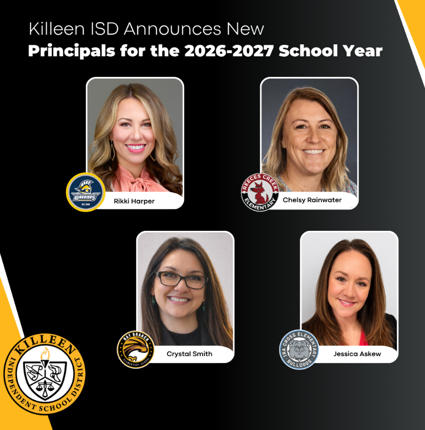 KILLEEN, Texas (KXXV) — Killeen Independent School District has named four new elementary school principals for the 2026-2027 school year, filling leadership roles at Hay Branch, Ira Cross, Maude Moore Wood, and Reeces Creek elementary schools.