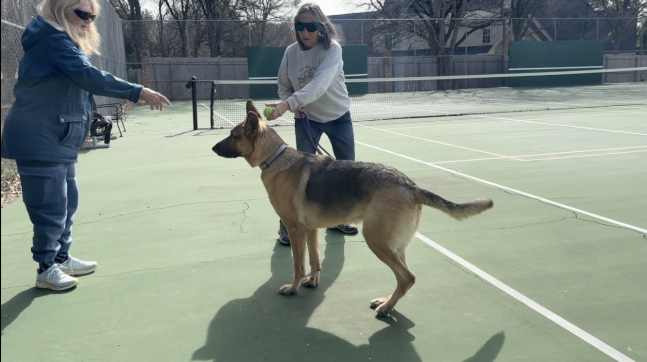 The two women, Debbie Kemp and Cyndy Shirey, using those tennis courts, say they need a safe and enclosed area to take their dog.