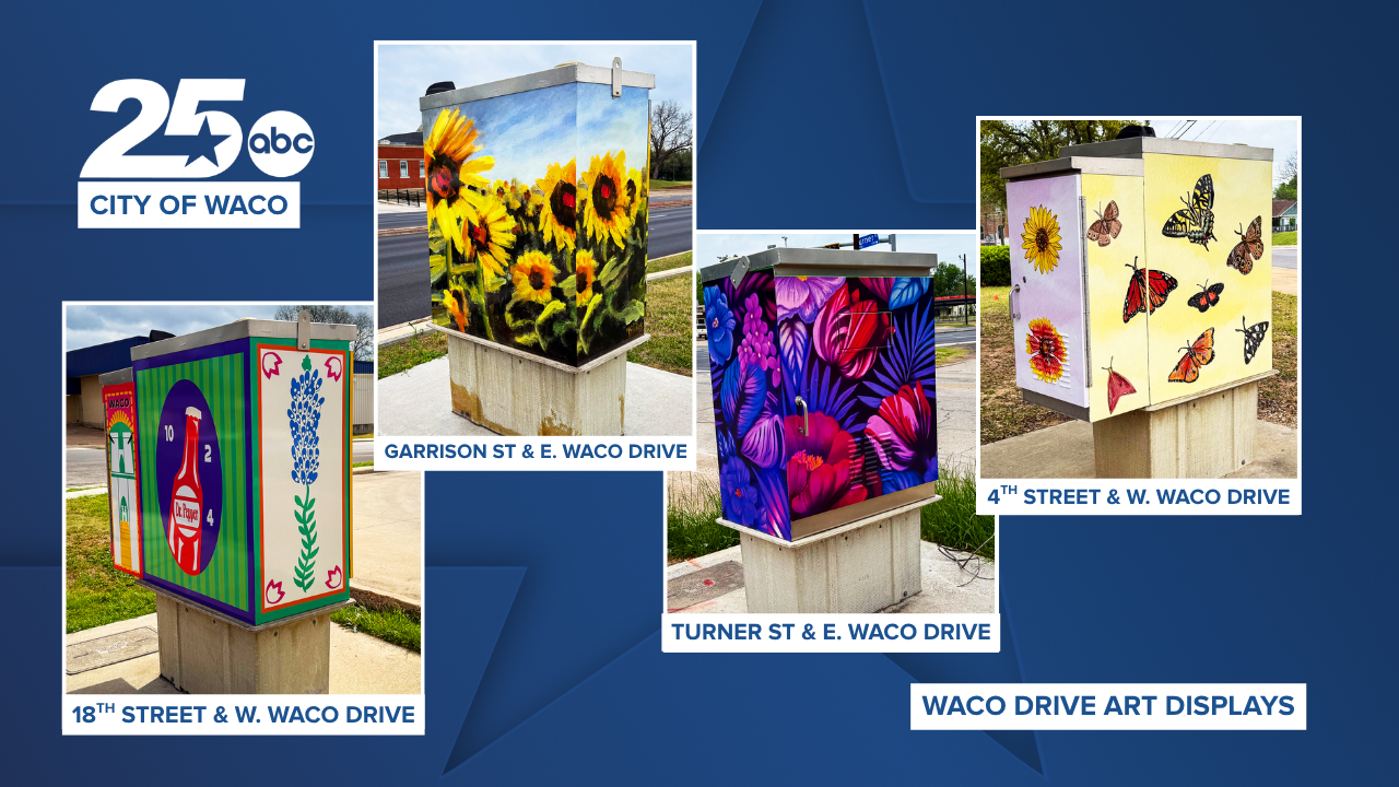 WACO, Texas (KXXV) — The City of Waco has unveiled 12 new artist-designed utility boxes along Waco Drive as part of an ongoing effort to transform standard traffic infrastructure into vibrant public art displays.