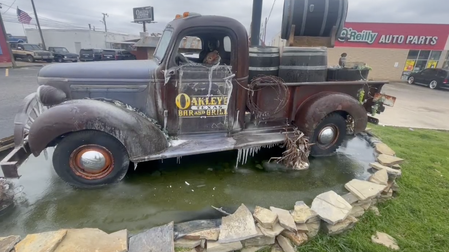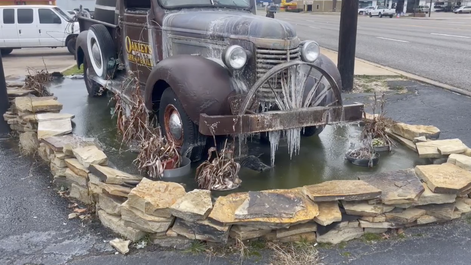 Icicles forming at Oakley's Bar & Grill in Waco.