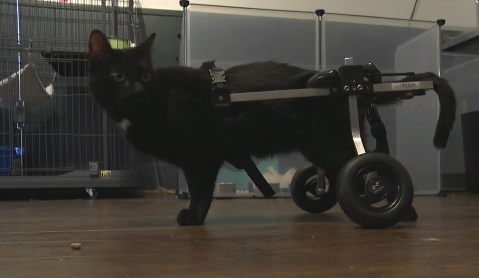 Local paralyzed cat gets new legs for Christmas
