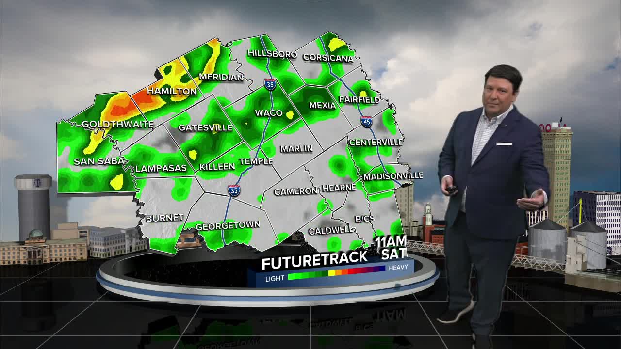 Saturday, scattered showers and storms will start to fill in west of I-35 during the morning hours. Instability values will be rather low, but some gusty winds will be possible with this activity. As storms move east, they will encounter a slightly more favorable environment for strengthening. Areas near I-35, including Waco, Temple, Killeen, should see the area of showers and storms move through from early to mid afternoon. Areas in the Brazos Valley and I-45 will likely see more of the activity by mid to late afternoon into the early evening hours. I think this area will have the best chance for a couple of severe storm with-n the line. Small hail and strong winds will be the main threat. There could be a small window for a spin-up or two in the Brazos Valley early Saturday evening. The higher potential will be in southeast Texas, but it will be something we watch closely. All of the stormy weather should move out before 10pm. Highs Saturday will be in the upper 60s and low 70s with lows by Sunday morning in the low to mid 50s.