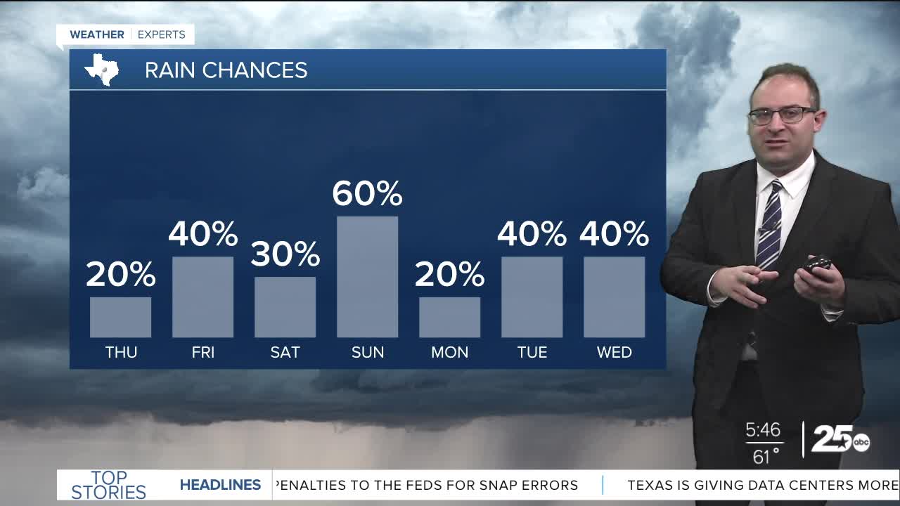 CENTRAL TEXAS — The weather will offer a slight change of pace today with higher humidity and the start of an active / stormy weather pattern. Rain and storm chances are near daily from today through next Thursday, but some days have much higher chances for storms than others and we're starting to dial in which of those days may or may not have severe weather too.