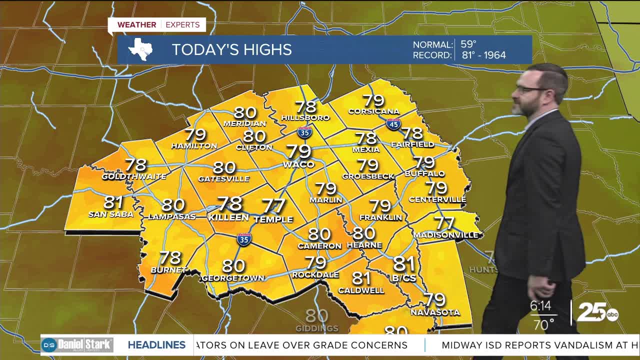 CENTRAL TEXAS — We'll start off with near-record warmth to start the day, and could end it with another record in jeopardy this afternoon as we climb into the upper 70s and low 80s.