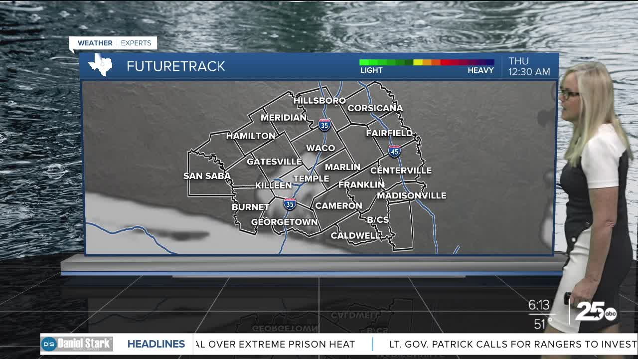 CENTRAL TEXAS — Enjoy another dry day, because after Wednesday, a slew of daily rain chances enter the forecast. Central Texans are waking up to a slightly warmer morning with lows in the 50s. Clouds will decrease as the day progresses and high temperatures will rise to the upper 70s with a southeast wind flow.