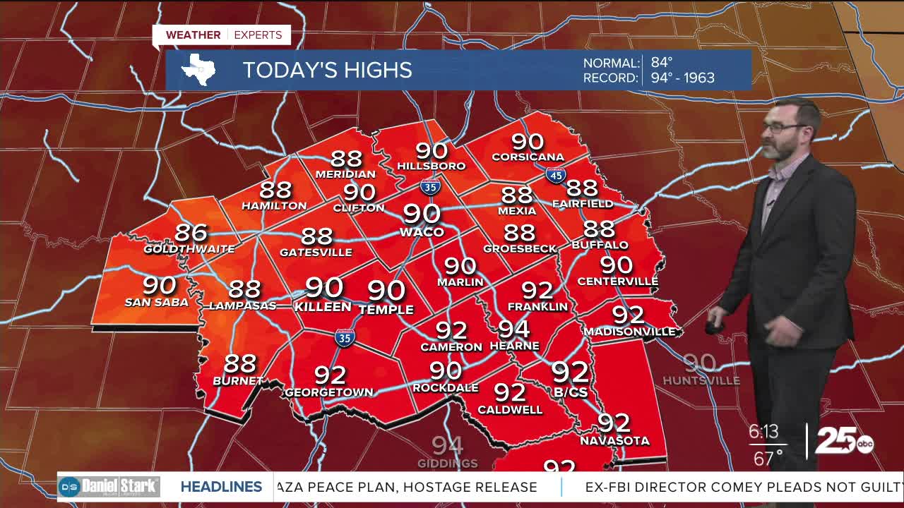 CENTRAL TEXAS — Highs will climb into the upper 80s and low 90s this afternoon with mainly sunny skies. A few fall-like mornings will be with us into the weekend.