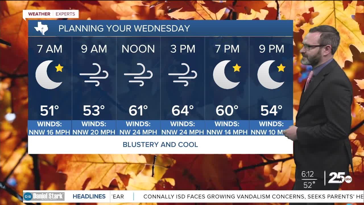 CENTRAL TEXAS — Winds will continue to gust to 30-40mph today as cooler temperatures hang around. Highs will stay in the 60s this afternoon.