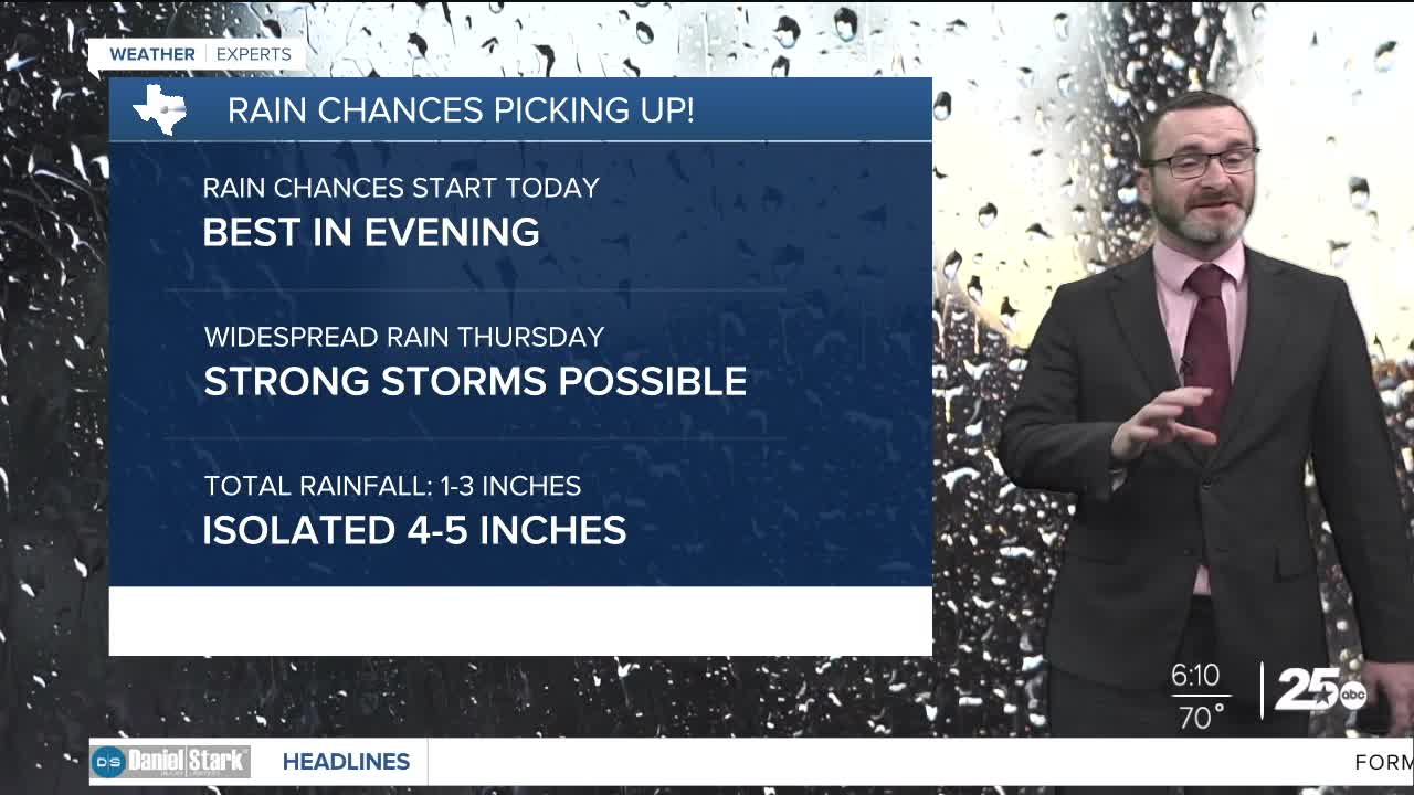 CENTRAL TEXAS — A few showers and storms will be possible today, with more activity expected Thursday. A few of these storms may be strong with heavy rainfall and gusty winds.