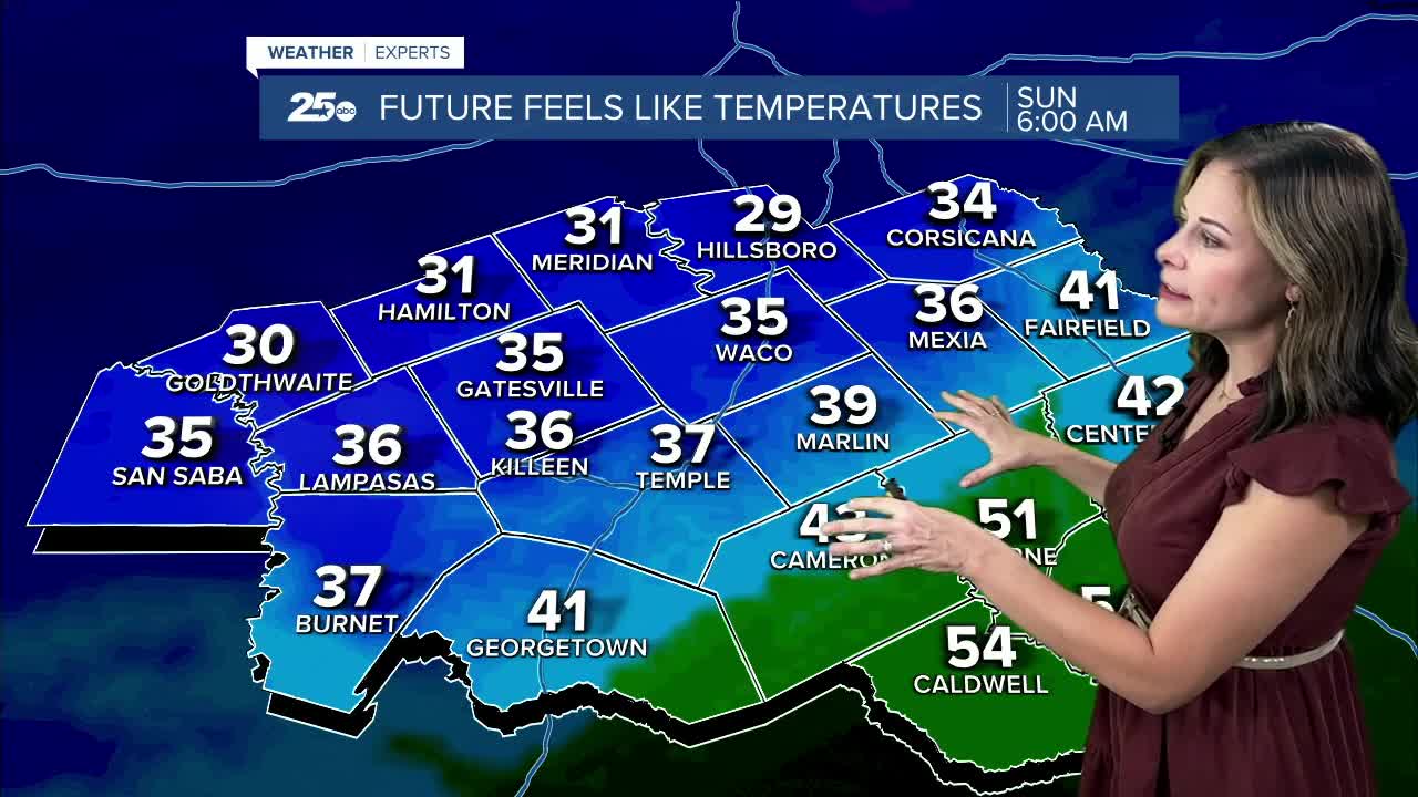 Waco will see a low around 48 degrees, while Bell County temperatures will settle in the middle 50s. Some areas across the Brazos Valley may even reach the low 60s by Saturday morning.