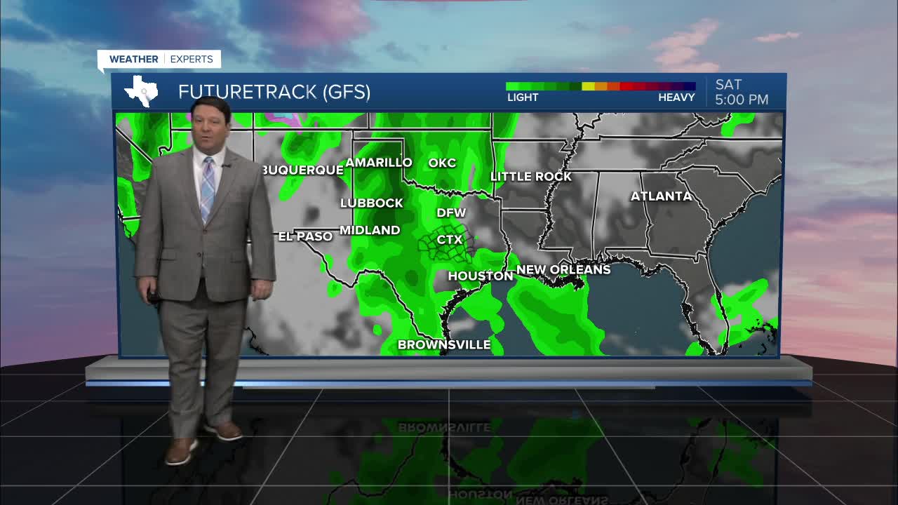 A stronger disturbance is expected to move closer to Texas this weekend. There are some track differences in the models, but it appears there could be a few strong to severe storms, especially Sunday. There are timing differences that could make a n impact on how strong storms are going to be in our area. If we see more of a Saturday night into Sunday morning event, our severe weather chances will be lower. If it is more of a Sunday afternoon event, then we would have a higher severe weather threat. As of now, the morning timing seems to be the one models are leaning toward, but we will continue to track this closely in the coming days. Highs both Saturday and Sunday are expected to be in the upper 70s.