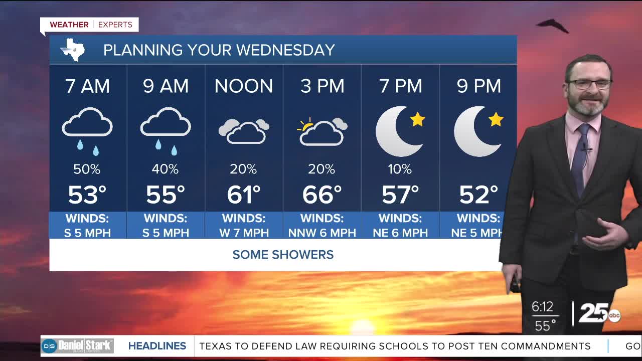 CENTRAL TEXAS — Some showers will be possible Wednesday, with the best chances east of I-35 during the first half of the day. Our arctic front still looks to arrive Friday.