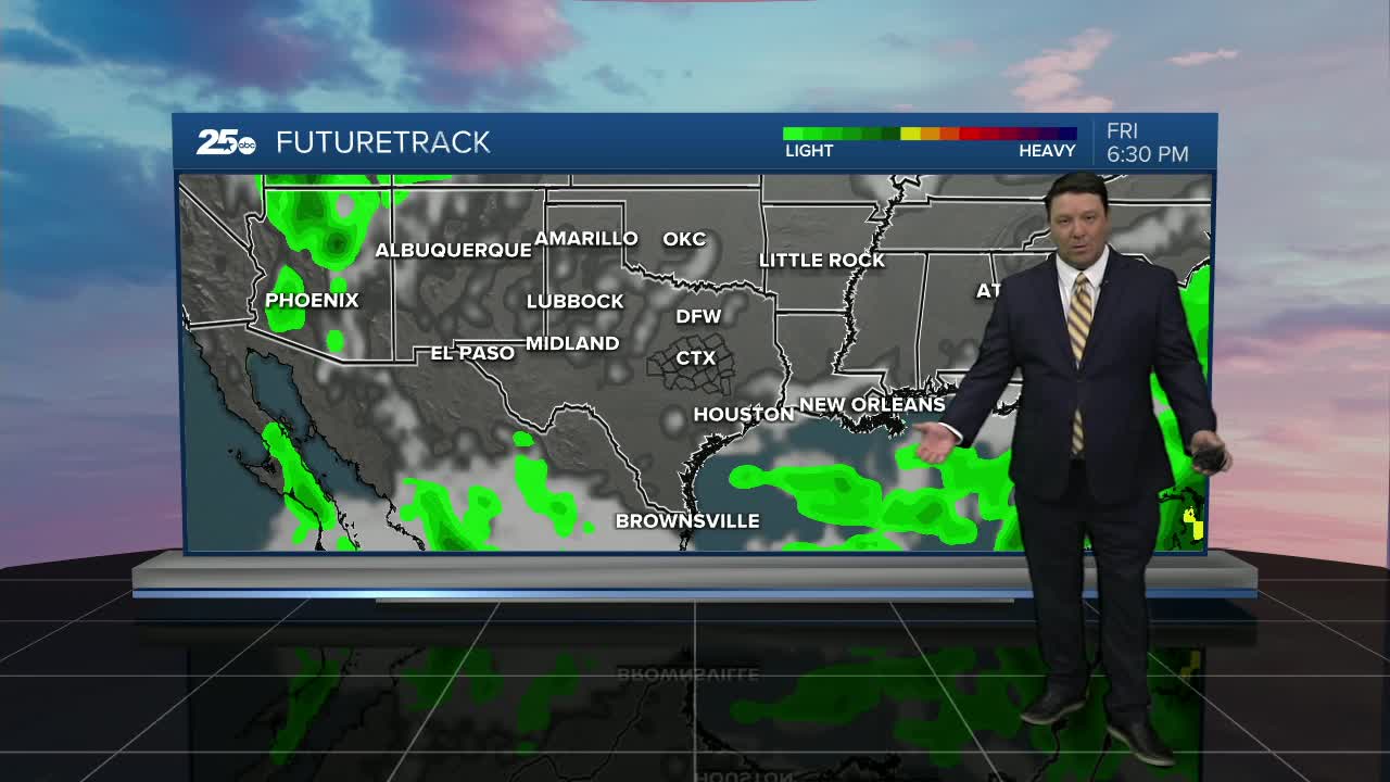 The furnace cranks up Thursday into the weekend as the heat dome establishes itself again over Central Texas. Highs will be in the 104-107° range.