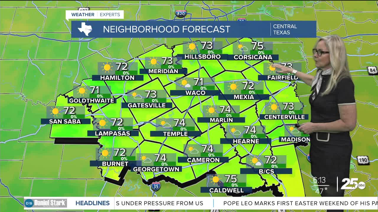 CENTRAL TEXAS — Central Texans are waking up to a chilly start to the work week. Temperatures sank to the 40s overnight as remnant conditions of Saturday's cold front linger.
