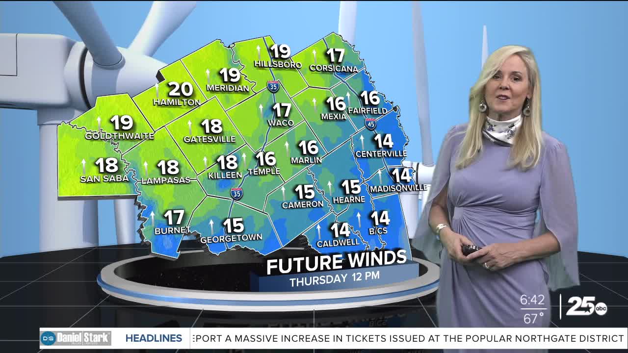 CENTRAL TEXAS — Central Texans are waking up to a breezy and sometimes sneezy morning. Southerly winds will run between 15 and 25 mph for most of Central Texas. The Brazos Valley will less breezy with winds around 15 mph.
